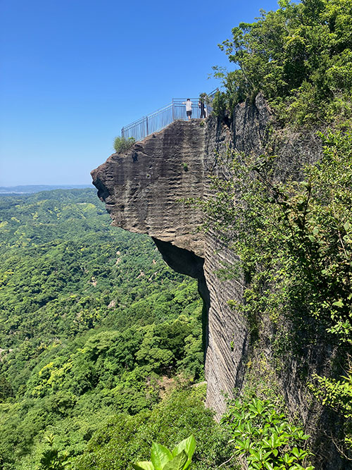 Stretching from east to west in the middle of Boso Peninsula, Nokogiriyama is a 329-meter high mountain in the southern hilly part of Chiba Prefecture. The unusual shape of jagged ridge line gave its name Nokogiriyama, or a saw-tooth mountain. Sharply cut vertical cliffs in the north are the remains of stone cutting industry flourished in 1900s. Deep manmade caves in search of high quality stone are almost like ancient monuments. Its trails, once used as a haul road of the cut-out stone pieces, are also popular trekking routes among active hikers.